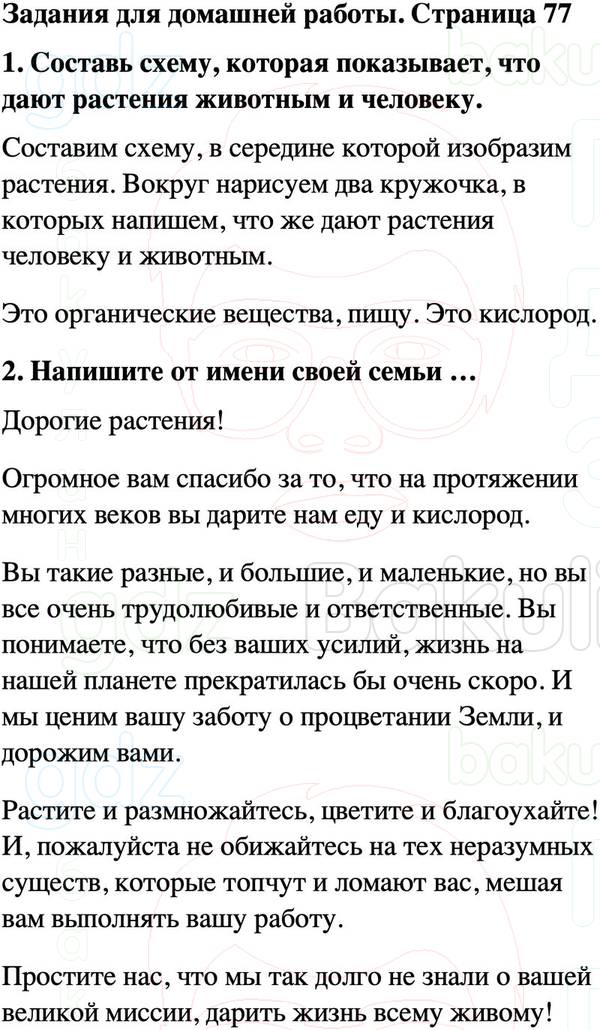 Растения – живые существа, значит, они дышат и питаются. Дышат растения так: из воздуха они поглощают частицы кислорода, при этом выделяют в воздух углекислый газ. А как растения питаются? Прочитай текст и найди в нем ответ на этот вопрос.