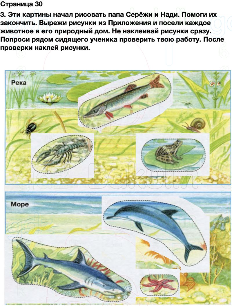 5. С помощью схемы в учебнике дострой модель-аппликацию. Для этого вырежи таблички из Приложения и расположи их в соответствующих окошках (не наклеивай!).