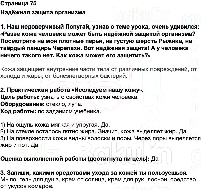 Правильный ответ к заданию ГДЗ Окружающий мир Рабочая тетрадь 3 класс Плешаков Школа России 2025 Часть 1 Страница, номер 75 бесплатно онлайн