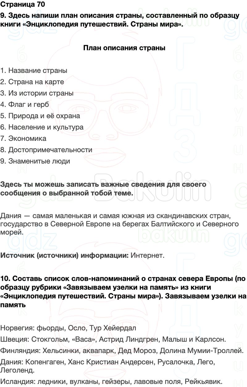 Правильный ответ к заданию ГДЗ Окружающий мир Рабочая тетрадь 3 класс Плешаков Школа России 2025 Часть 2 Страница, номер 70 бесплатно онлайн
