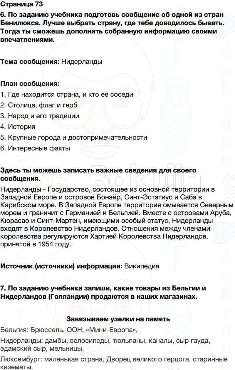 Правильный ответ к заданию ГДЗ Окружающий мир Рабочая тетрадь 3 класс Плешаков Школа России 2025 Часть 2 Страница, номер 73 бесплатно онлайн