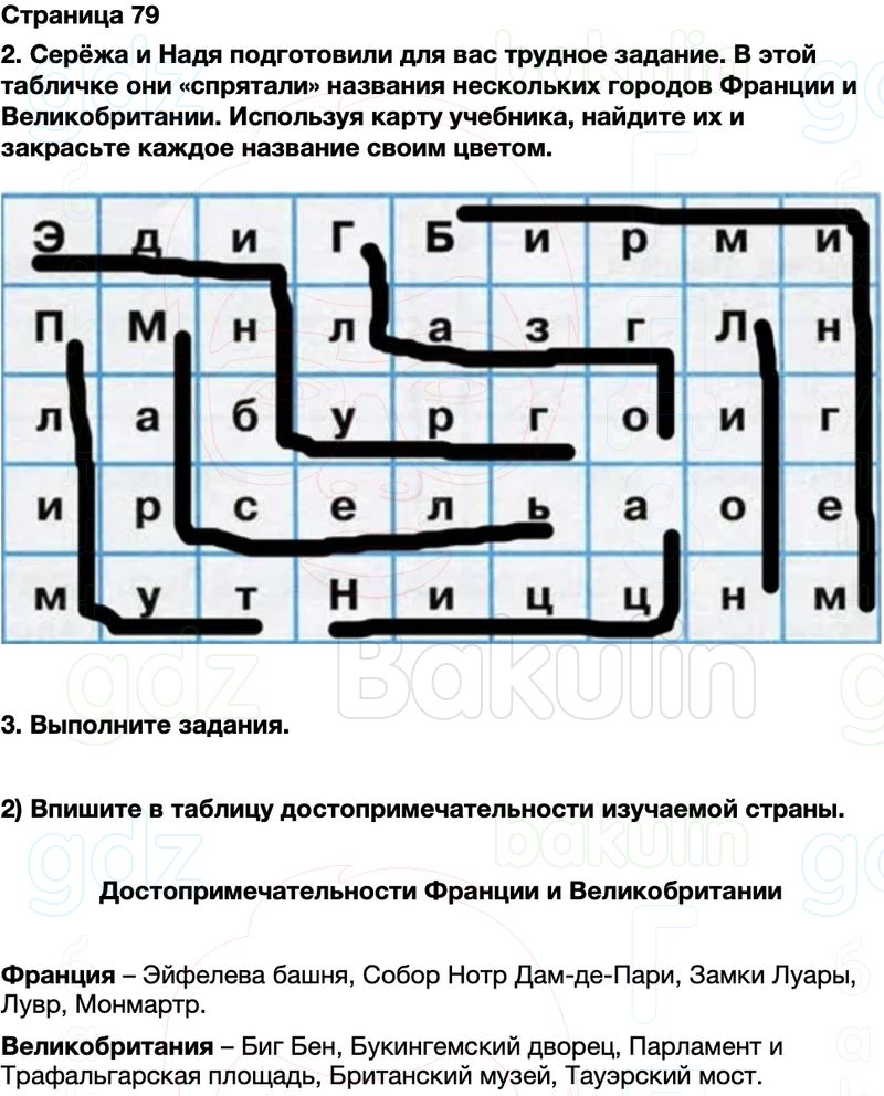 Правильный ответ к заданию ГДЗ Окружающий мир Рабочая тетрадь 3 класс Плешаков Школа России 2025 Часть 2 Страница, номер 79 бесплатно онлайн