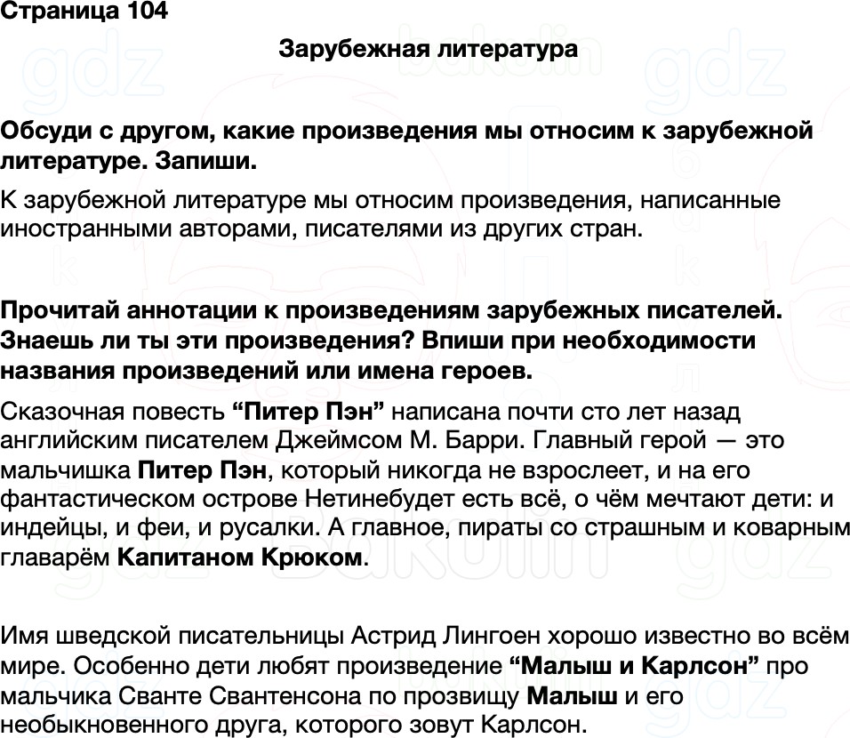 Правильный ответ к заданию ГДЗ Рабочая тетрадь Литературное чтение 4 класс Бойкина, Виноградская к учебнику Канакина, Горецкий Школа России