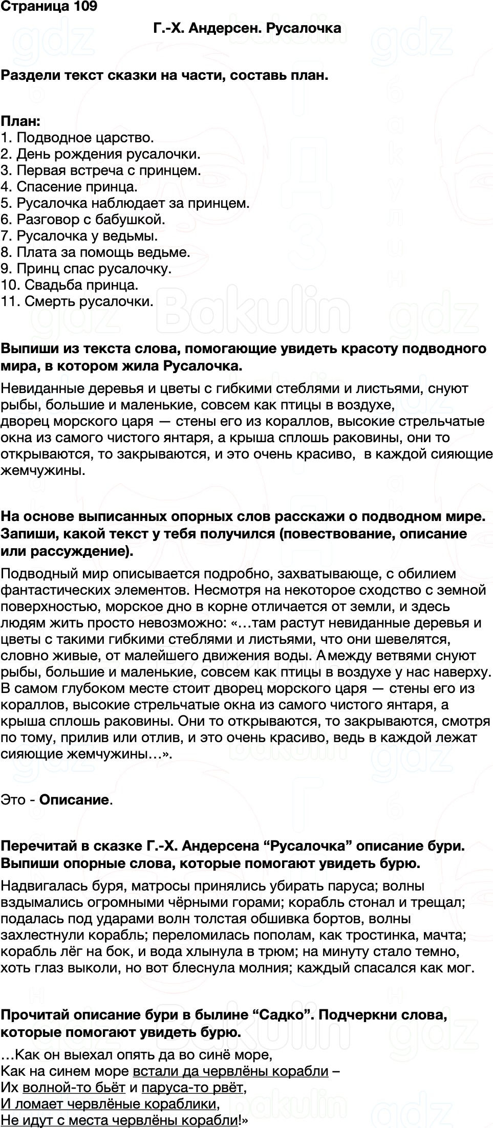 Правильный ответ к заданию ГДЗ Рабочая тетрадь Литературное чтение 4 класс Бойкина, Виноградская к учебнику Канакина, Горецкий Школа России