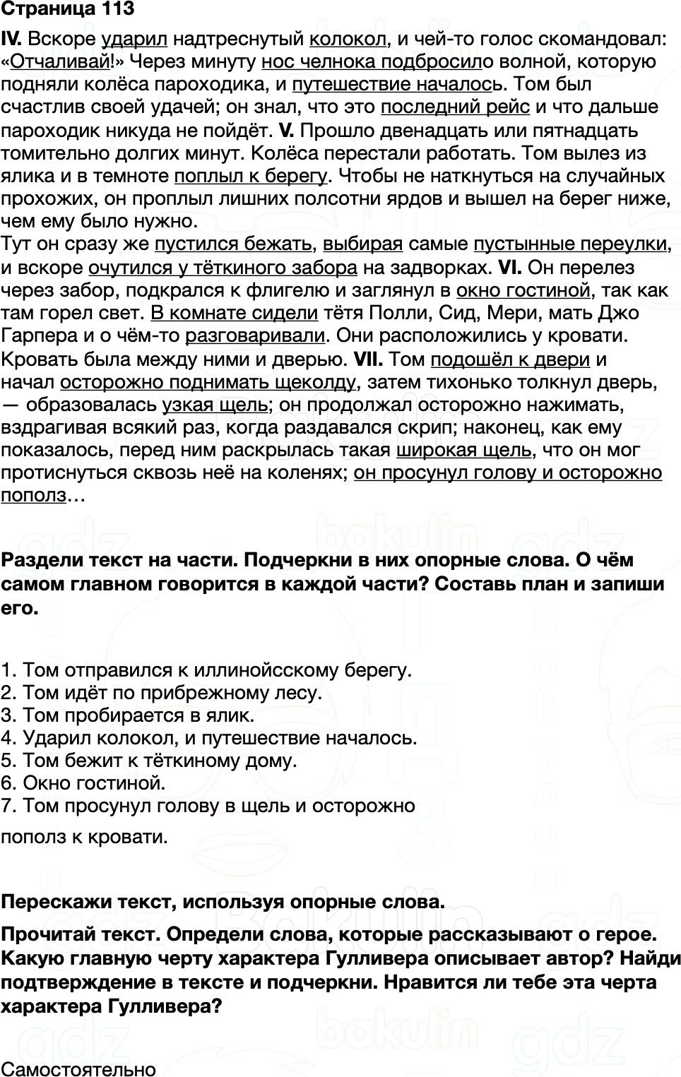 Правильный ответ к заданию ГДЗ Рабочая тетрадь Литературное чтение 4 класс Бойкина, Виноградская к учебнику Канакина, Горецкий Школа России