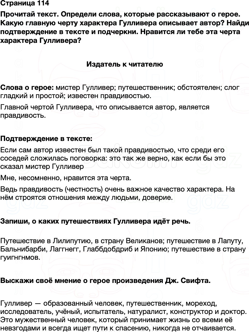 Правильный ответ к заданию ГДЗ Рабочая тетрадь Литературное чтение 4 класс Бойкина, Виноградская к учебнику Канакина, Горецкий Школа России