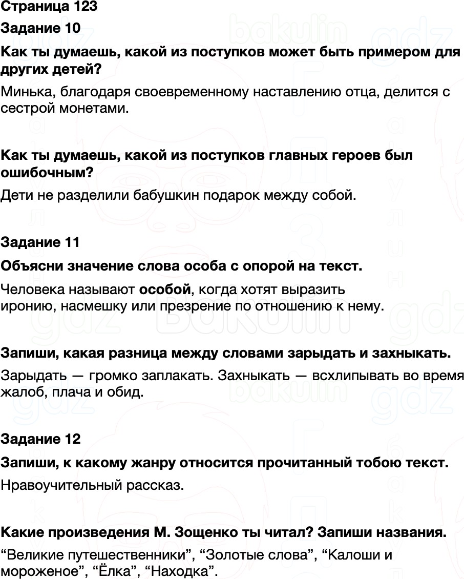 Правильный ответ к заданию ГДЗ Рабочая тетрадь Литературное чтение 4 класс Бойкина, Виноградская к учебнику Канакина, Горецкий Школа России