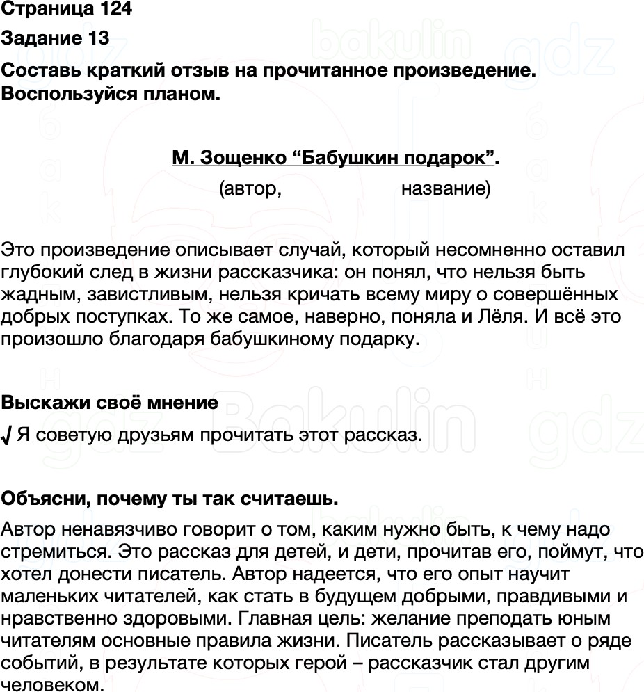 Правильный ответ к заданию ГДЗ Рабочая тетрадь Литературное чтение 4 класс Бойкина, Виноградская к учебнику Канакина, Горецкий Школа России