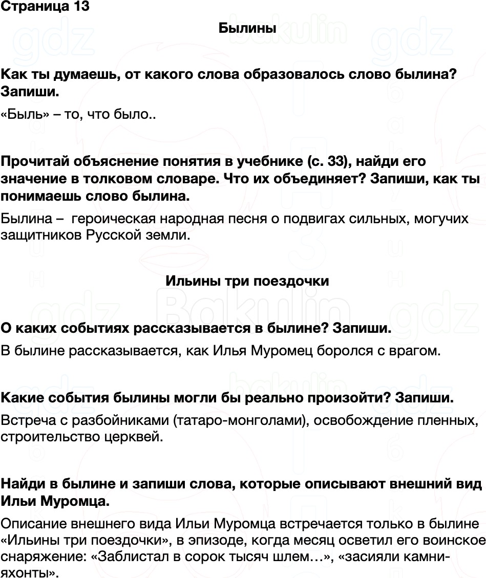 Правильный ответ к заданию ГДЗ Рабочая тетрадь Литературное чтение 4 класс Бойкина, Виноградская к учебнику Канакина, Горецкий Школа России