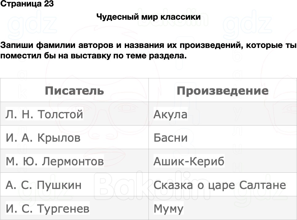 Правильный ответ к заданию ГДЗ Рабочая тетрадь Литературное чтение 4 класс Бойкина, Виноградская к учебнику Канакина, Горецкий Школа России