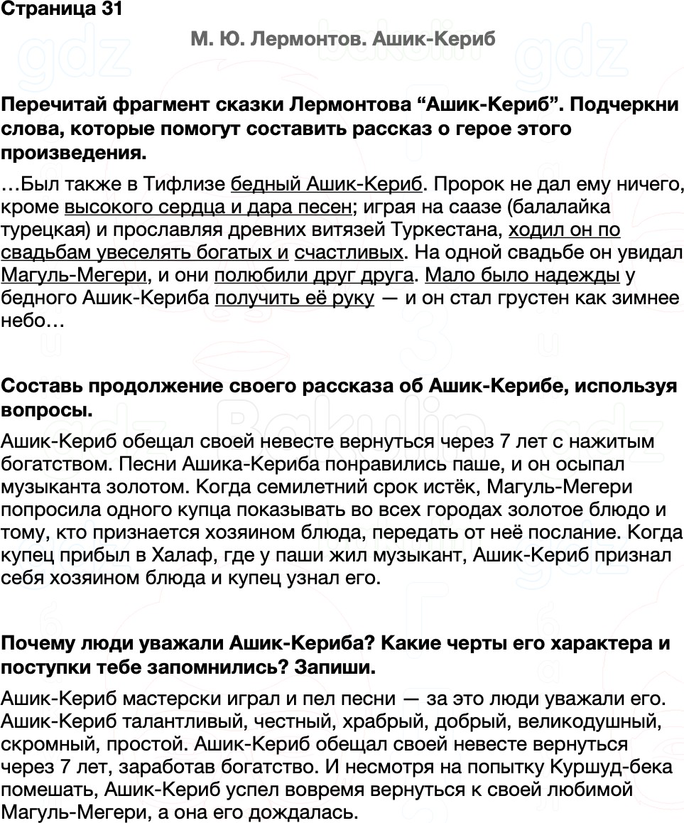 Правильный ответ к заданию ГДЗ Рабочая тетрадь Литературное чтение 4 класс Бойкина, Виноградская к учебнику Канакина, Горецкий Школа России