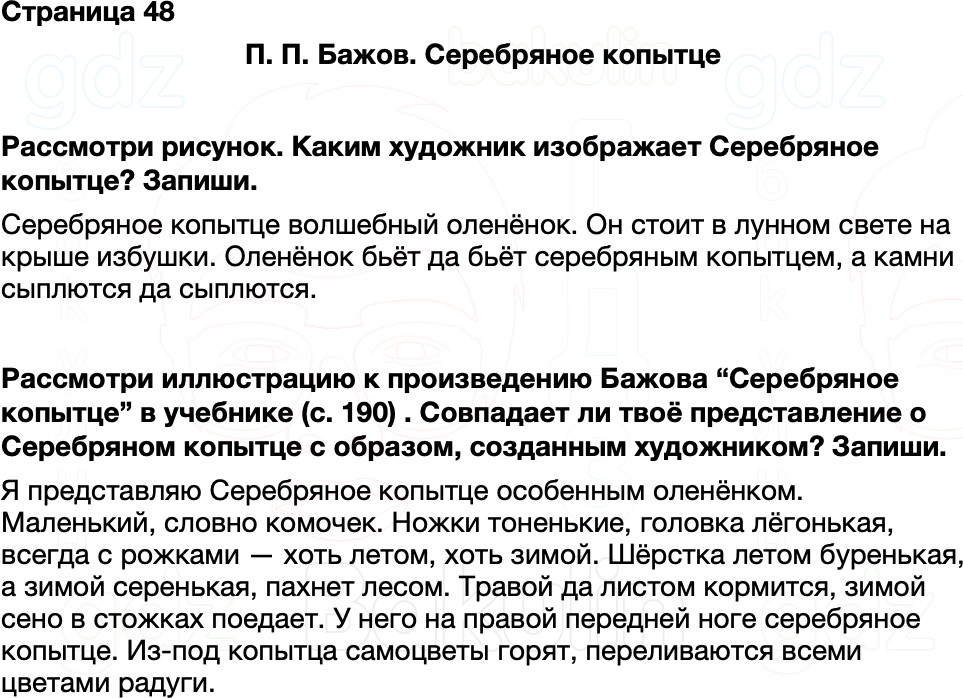 Правильный ответ к заданию ГДЗ Рабочая тетрадь Литературное чтение 4 класс Бойкина, Виноградская к учебнику Канакина, Горецкий Школа России