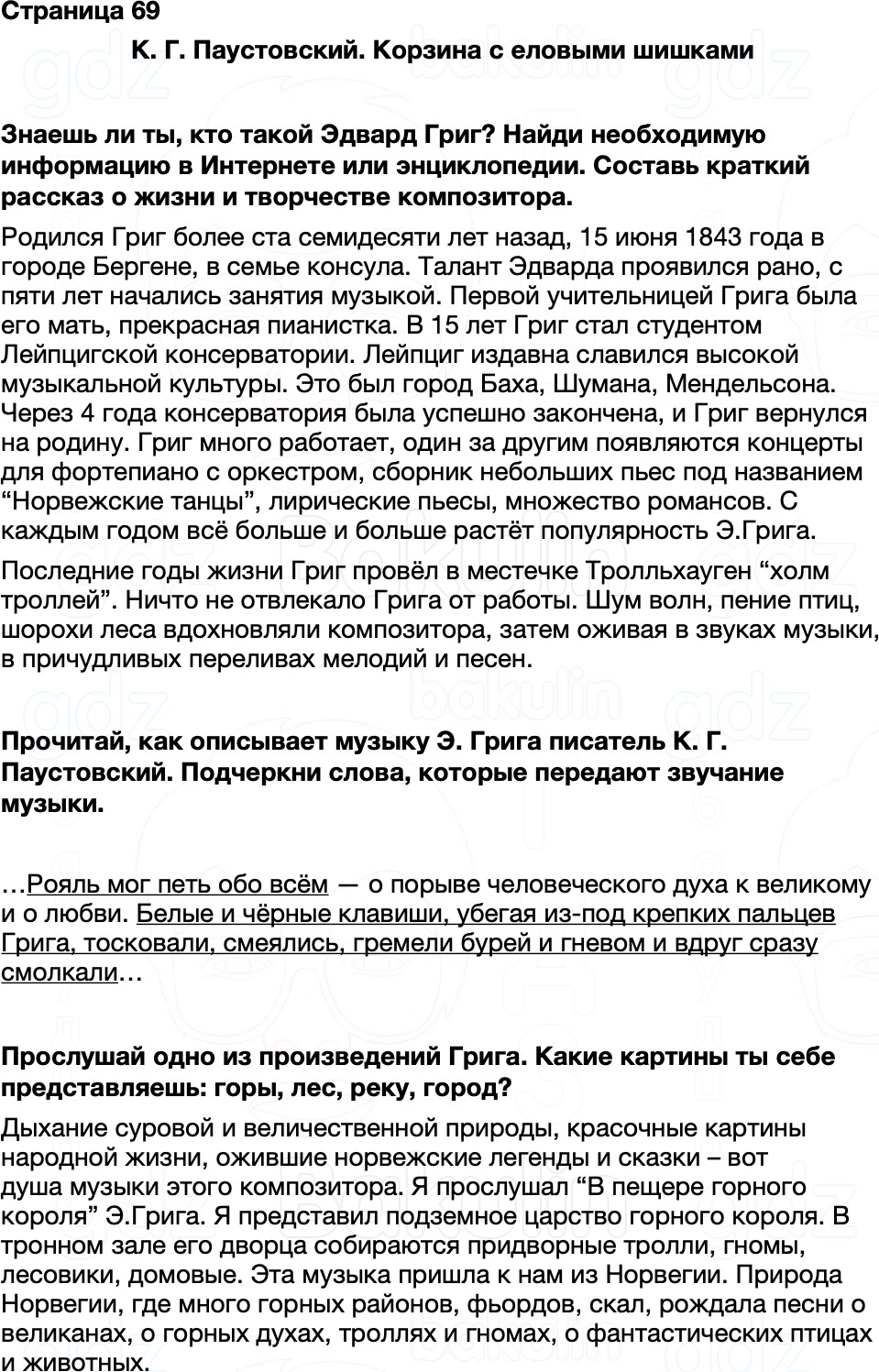 Правильный ответ к заданию ГДЗ Рабочая тетрадь Литературное чтение 4 класс Бойкина, Виноградская к учебнику Канакина, Горецкий Школа России