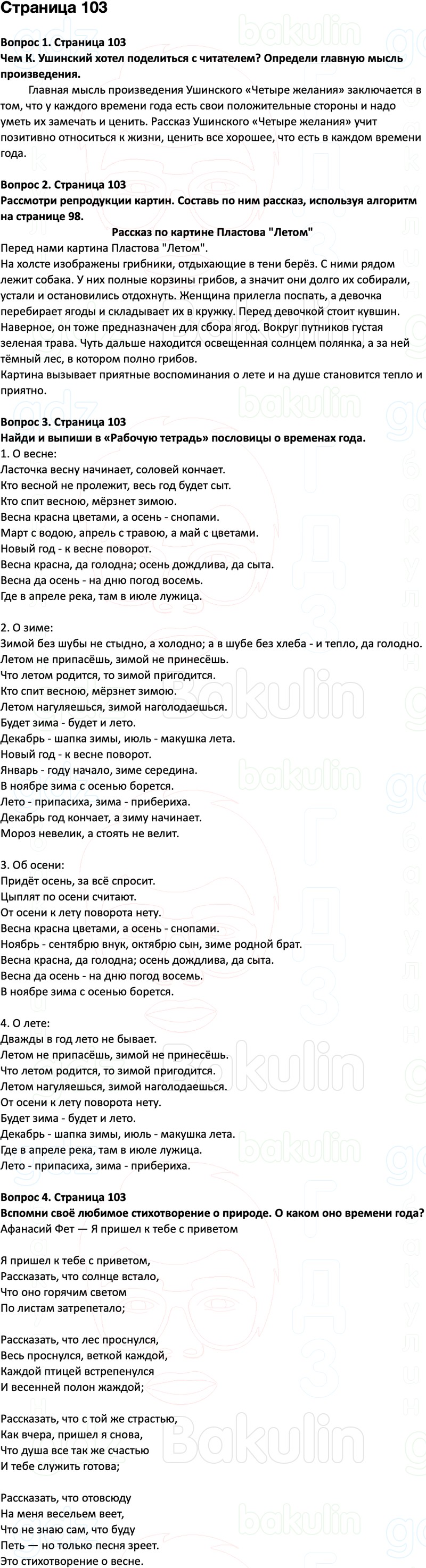 Правильный ответ к заданию ГДЗ Литературное чтение учебник 4 класс Климанова, Горецкий, Голованова Школа России ФГОС