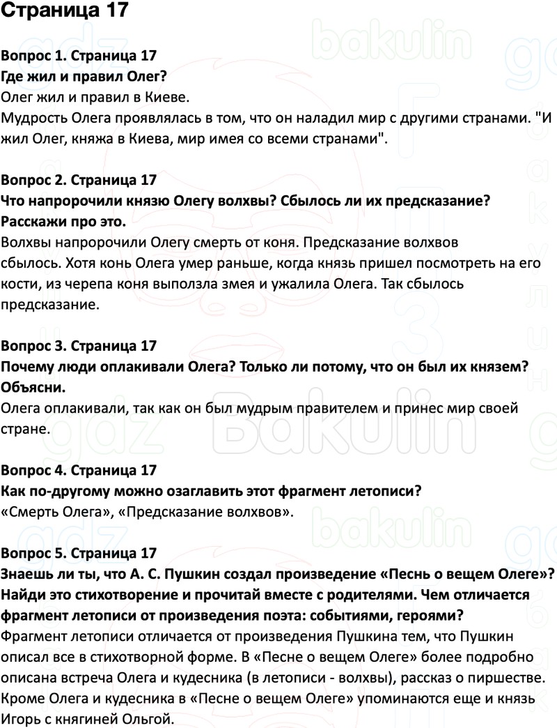 Правильный ответ к заданию ГДЗ Литературное чтение учебник 4 класс Климанова, Горецкий, Голованова Школа России ФГОС Часть 1 Страница, номер 17 бесплатно онлайн