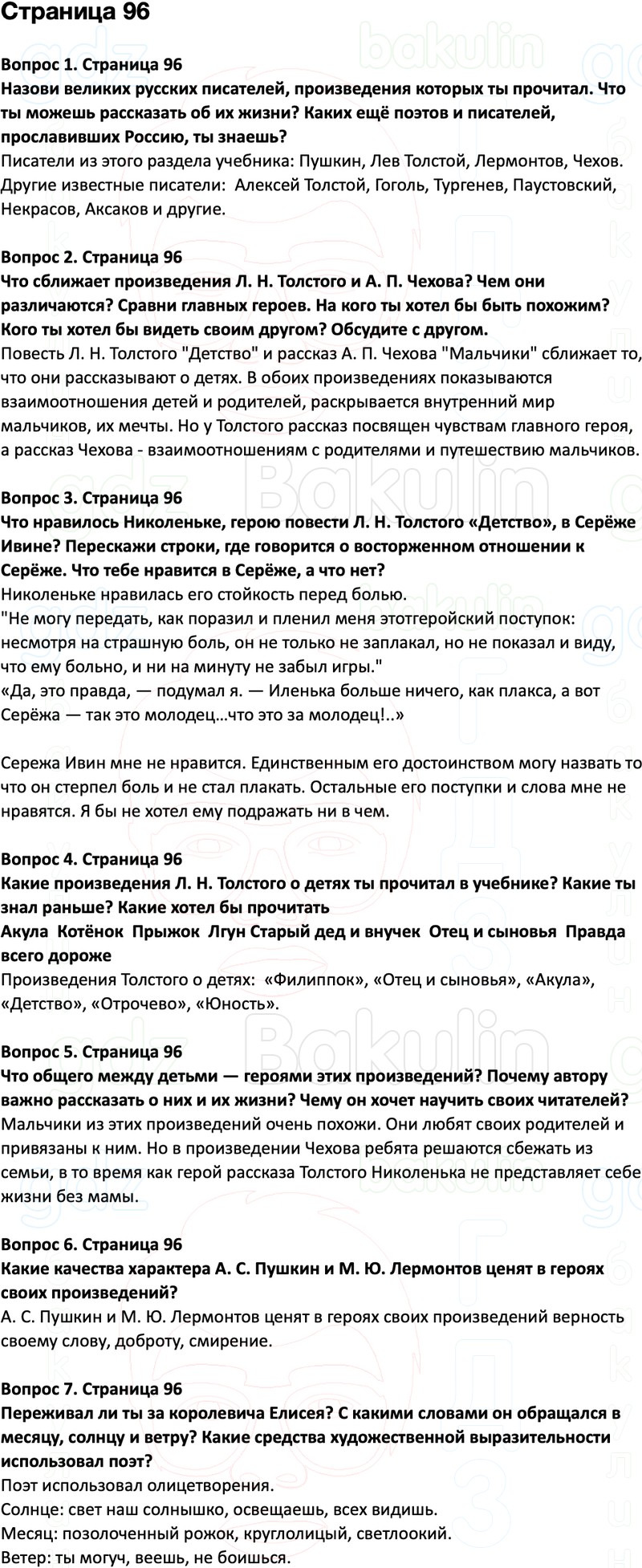 Правильный ответ к заданию ГДЗ Литературное чтение учебник 4 класс Климанова, Горецкий, Голованова Школа России ФГОС