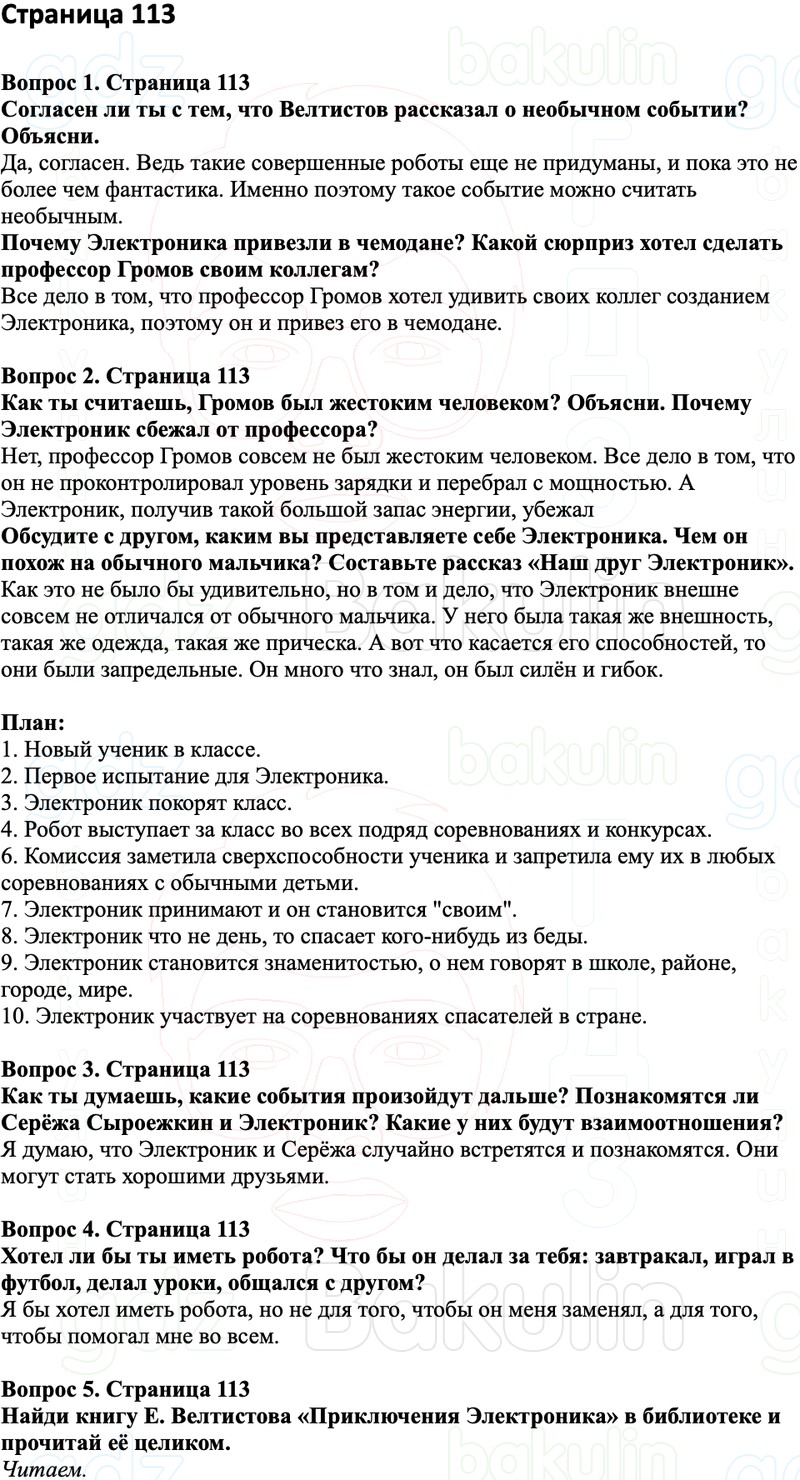 3. Как ты считаешь, Громов был жестоким человеком? Объясни. Почему Электроник сбежал от профессора? Обсудите с другом, каким вы представляете себе Электроника. Чем он похож на обычного мальчика? Составьте рассказ «Наш друг Электроник».