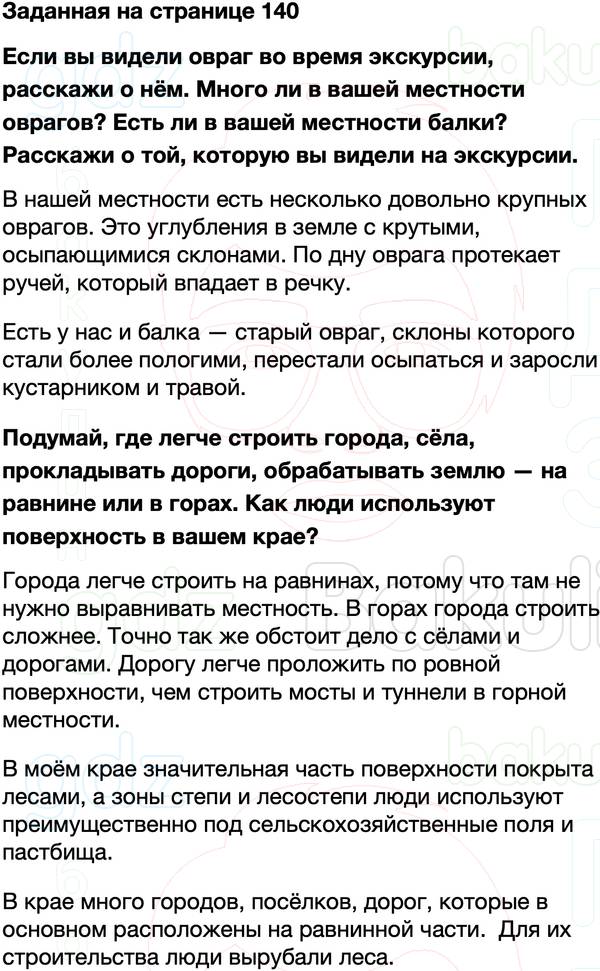 Правильный ответ к заданию ГДЗ учебник по окружающему миру 4 класс Плешаков, Крючкова Часть 1 Страница, номер 140 бесплатно онлайн