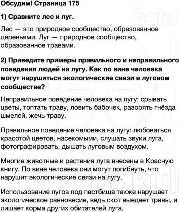 Правильный ответ к заданию ГДЗ учебник по окружающему миру 4 класс Плешаков, Крючкова Часть 1 Страница, номер 175 бесплатно онлайн