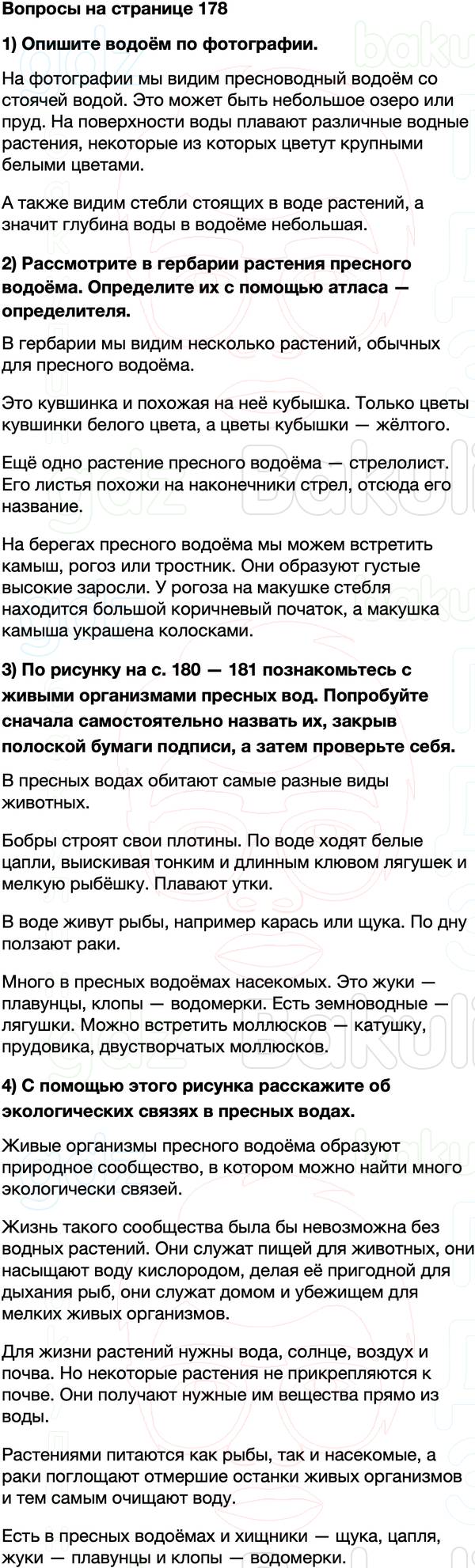 Правильный ответ к заданию ГДЗ учебник по окружающему миру 4 класс Плешаков, Крючкова Часть 1 Страница, номер 178 бесплатно онлайн
