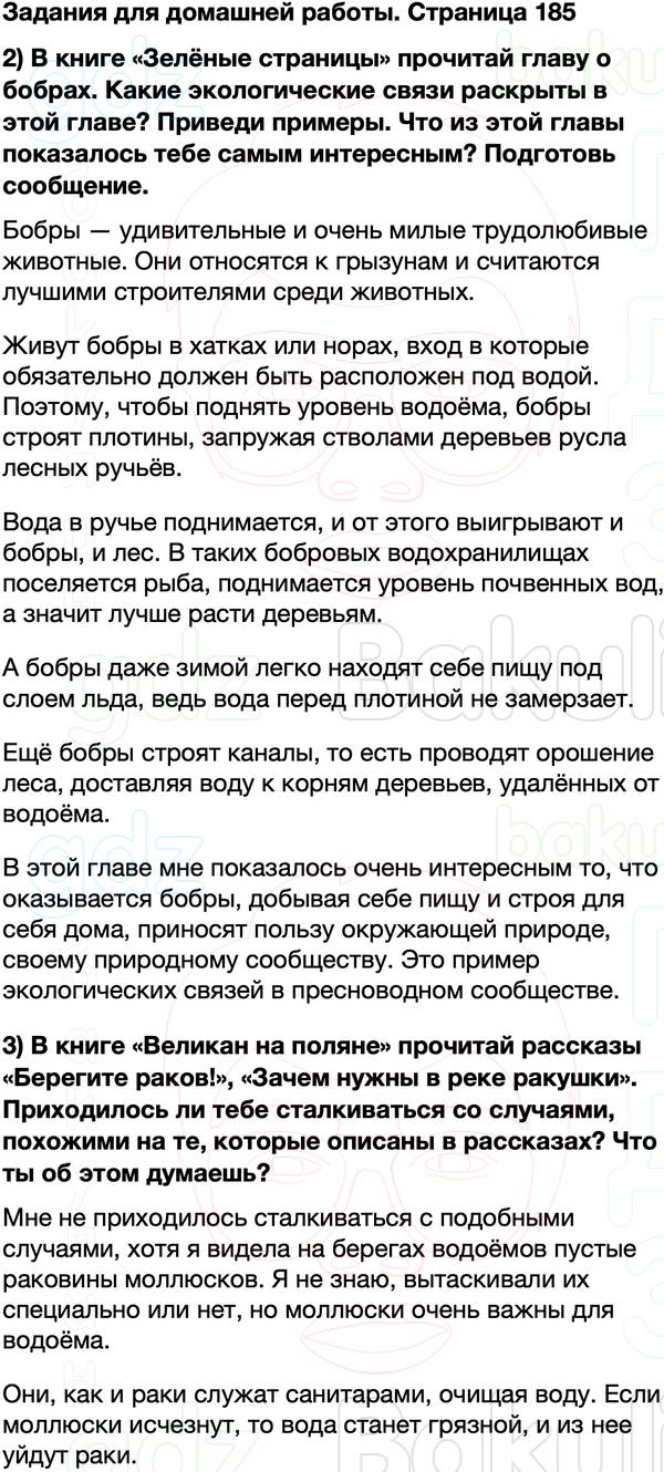 Правильный ответ к заданию ГДЗ учебник по окружающему миру 4 класс Плешаков, Крючкова Часть 1 Страница, номер 185 бесплатно онлайн