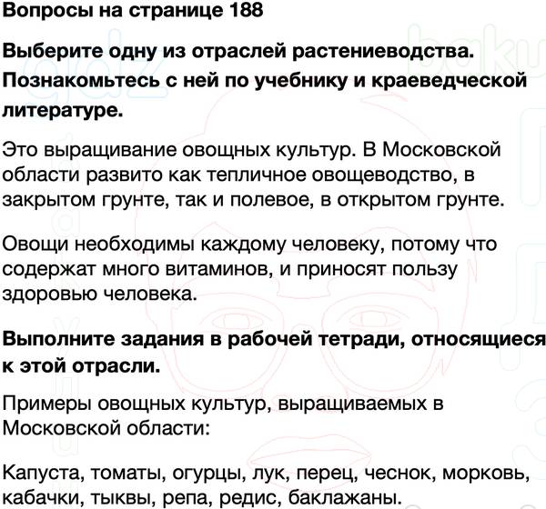 Правильный ответ к заданию ГДЗ учебник по окружающему миру 4 класс Плешаков, Крючкова Часть 1 Страница, номер 188 бесплатно онлайн