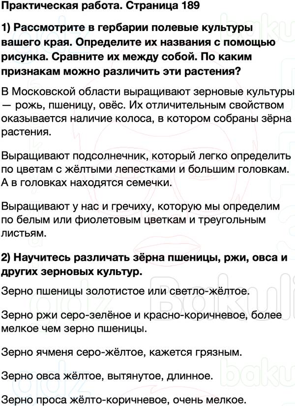 Правильный ответ к заданию ГДЗ учебник по окружающему миру 4 класс Плешаков, Крючкова Часть 1 Страница, номер 189 бесплатно онлайн
