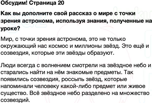 Правильный ответ к заданию ГДЗ учебник по окружающему миру 4 класс Плешаков, Крючкова Часть 1 Страница, номер 20 бесплатно онлайн