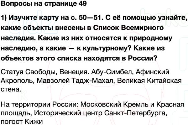 Правильный ответ к заданию ГДЗ учебник по окружающему миру 4 класс Плешаков, Крючкова Часть 1 Страница, номер 49 бесплатно онлайн
