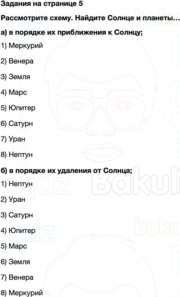1. Попробуй рассказать о мире с точки зрения астронома. Используй для этого слова: небесные тела, звёзды, планеты, Солнце, Земля, Луна. Выслушай других ребят. Всем классом составьте наиболее полный рассказ.