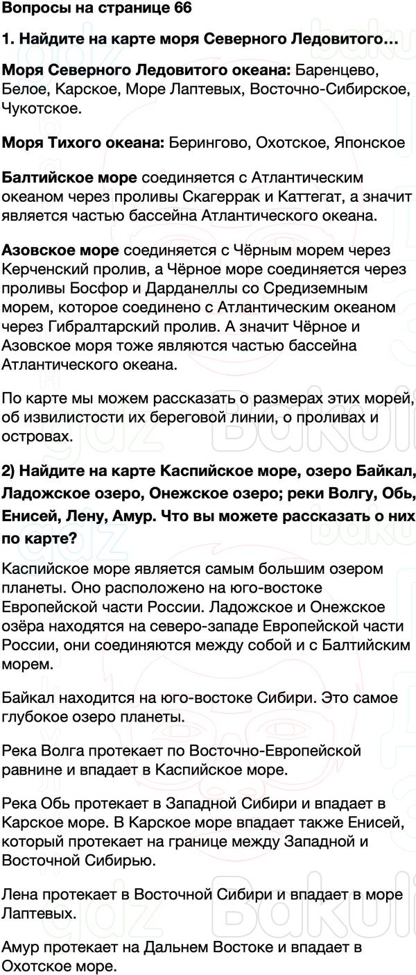 Правильный ответ к заданию ГДЗ учебник по окружающему миру 4 класс Плешаков, Крючкова Часть 1 Страница, номер 66 бесплатно онлайн