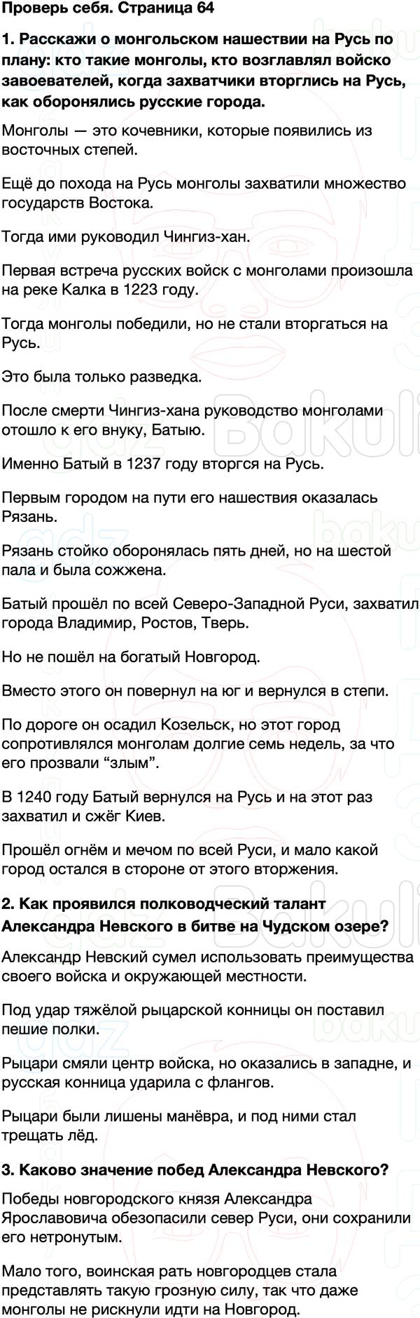 Правильный ответ к заданию ГДЗ учебник по окружающему миру 4 класс Плешаков, Крючкова Часть 2 Страница, номер 64 бесплатно онлайн
