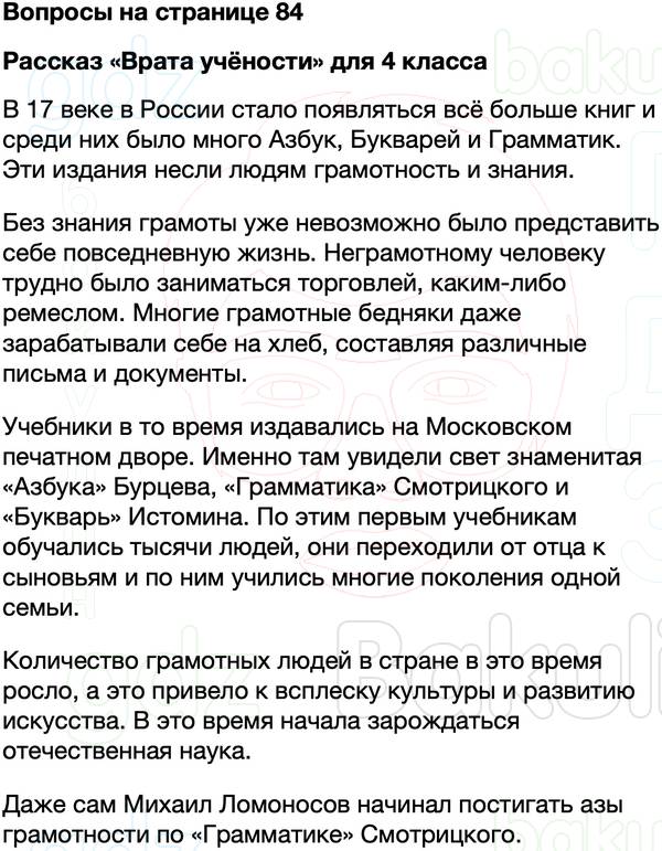 Правильный ответ к заданию ГДЗ учебник по окружающему миру 4 класс Плешаков, Крючкова Часть 2 Страница, номер 84 бесплатно онлайн