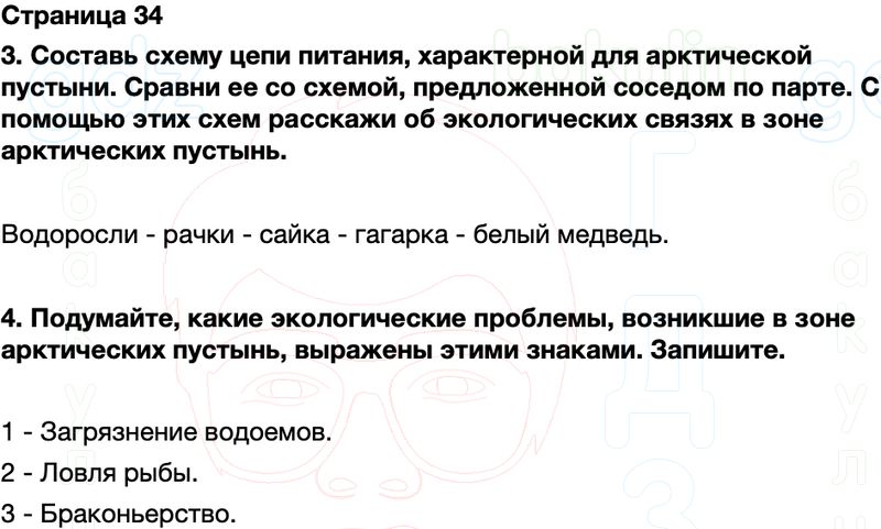 3. Составь схему цепи питания, характерной для арктической пустыни. Сравни ее со схемой, предложенной соседом по парте. С помощью этих схем расскажи об экологических связях в зоне арктических пустынь.