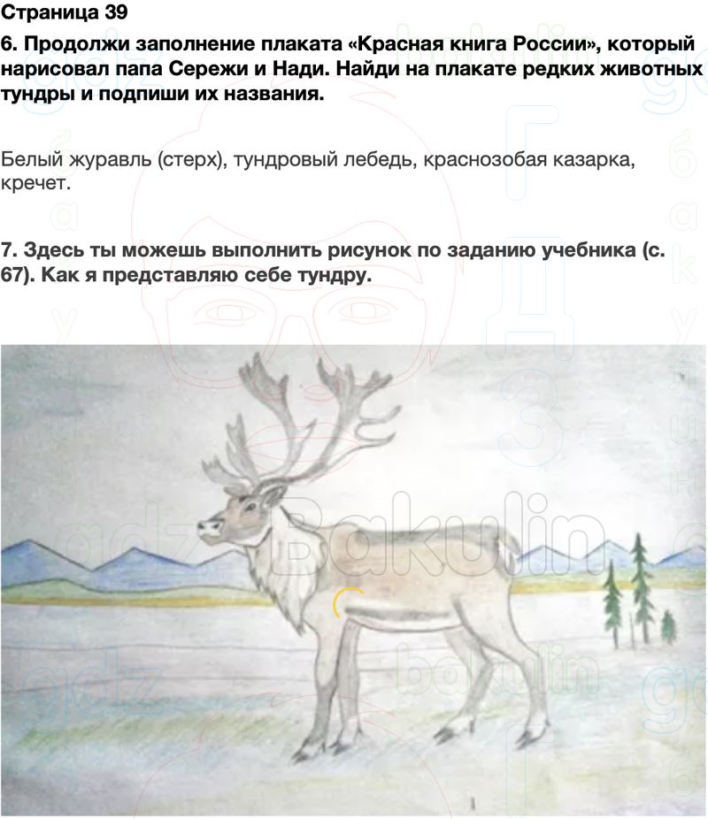 6. Продолжи заполнение плаката «Красная книга России», который нарисовал папа Сережи и Нади. Найди на плакате редких животных тундры и подпиши их названия.