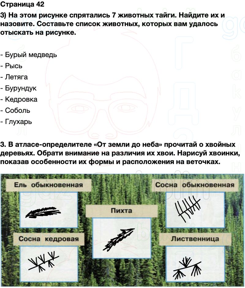 3. В атласе-определителе «От земли до неба» прочитай о хвойных деревьях. Обрати внимание на различия их хвои. Нарисуй хвоинки, показав особенности их формы и расположения на веточках.