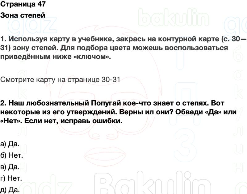 2. Наш любознательный Попугай кое-что знает о степях. Вот некоторые из его утверждений. Верны ил они? Обведи «Да» или «Нет». Если нет, исправь ошибки.