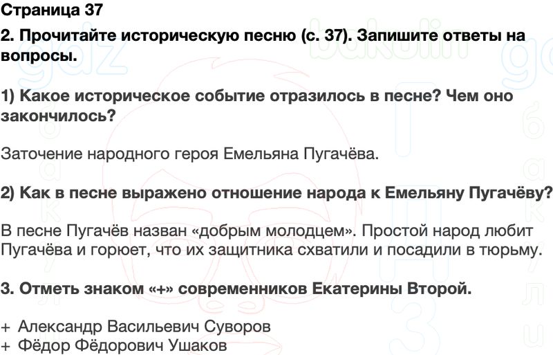 2. Прочитайте историческую песню (с. 37). Запишите ответы на вопросы.
