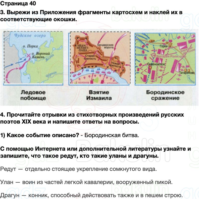 С помощью Интернета или дополнительной литературы узнайте и запишите, что такое редут, кто такие уланы и драгуны.