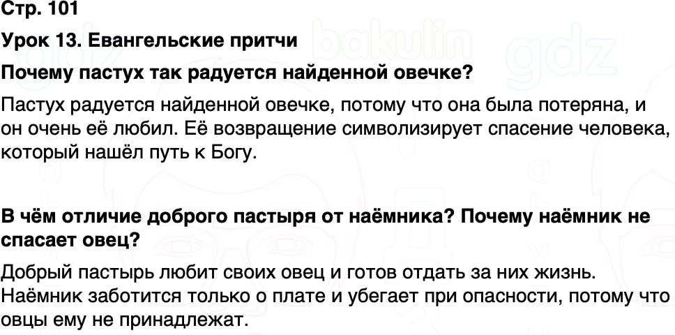 Стр. 101 Урок 13. Евангельские притчи Почему пастух так радуется найденной овечке?