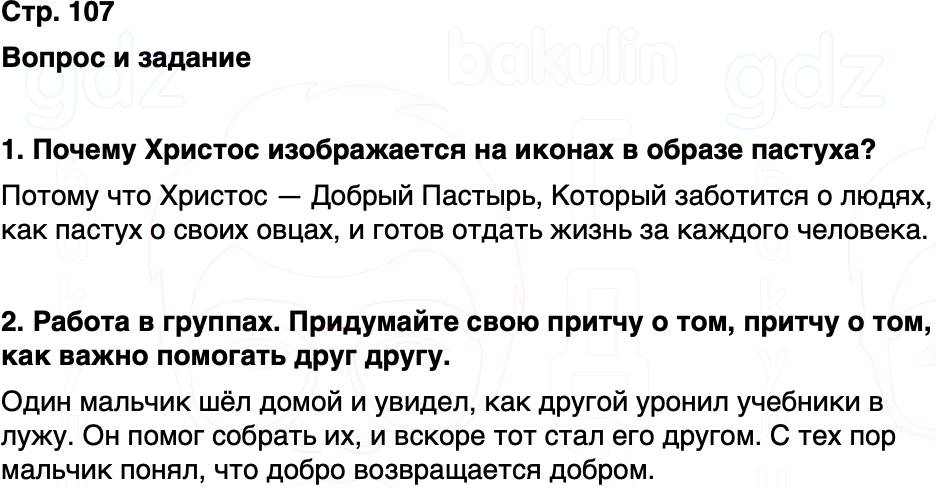 Правильный ответ к заданию ГДЗ Основы религиозных культур. Основы православной культуры 4 класс Васильева ОРКСЭ ФГОС