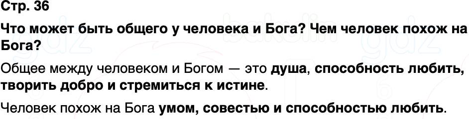 Стр. 36 Что может быть общего у человека и Бога? Чем человек похож на Бога?