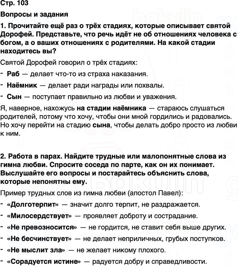 1. Прочитайте ещё раз о трёх стадиях, которые описывает святой Дорофей. Представьте, что речь идёт не об отношениях человека с богом, а о ваших отношениях с родителями. На какой стадии находитесь вы?