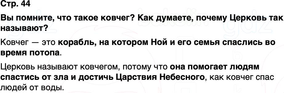 Стр. 44 Вы помните, что такое ковчег? Как думаете, почему Церковь так называют?