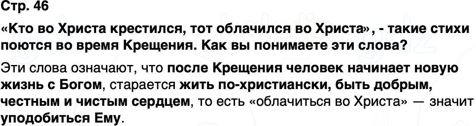 Стр. 46 «Кто во Христа крестился, тот облачился во Христа», - такие стихи поются во время Крещения. Как вы понимаете эти слова?