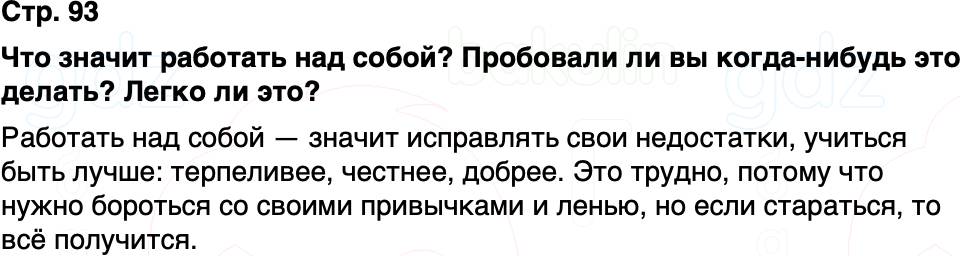 Стр. 93 Что значит работать над собой? Пробовали ли вы когда-нибудь это делать? Легко ли это?