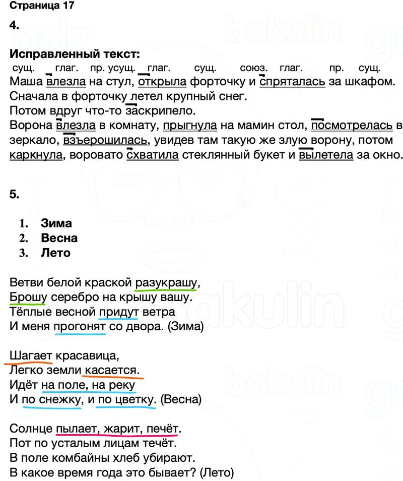Правильный ответ к заданию ГДЗ Тренажёр русский язык 4 класс Тихомирова (к учебнику Канакина, Горецкий)Страницы, номер 17 бесплатно онлайн