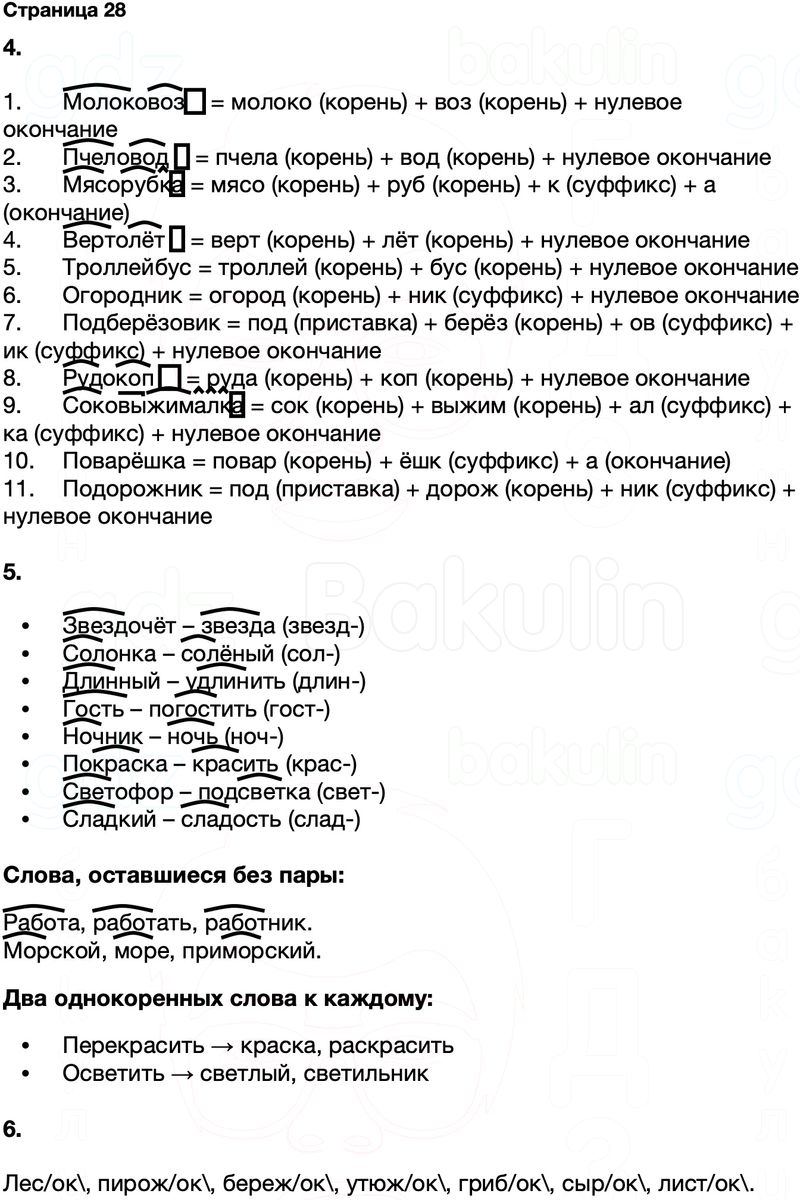 Правильный ответ к заданию ГДЗ Тренажёр русский язык 4 класс Тихомирова (к учебнику Канакина, Горецкий)Страницы, номер 28 бесплатно онлайн