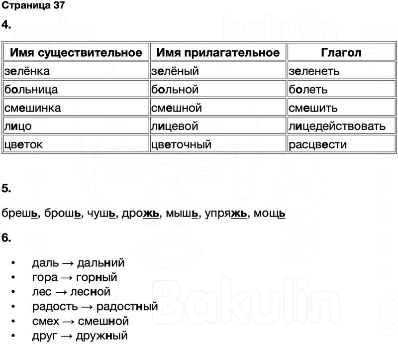 Правильный ответ к заданию ГДЗ Тренажёр русский язык 4 класс Тихомирова (к учебнику Канакина, Горецкий)Страницы, номер 37 бесплатно онлайн