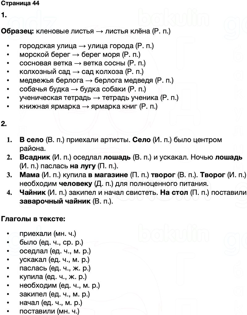 Правильный ответ к заданию ГДЗ Тренажёр русский язык 4 класс Тихомирова (к учебнику Канакина, Горецкий)Страницы, номер 44 бесплатно онлайн